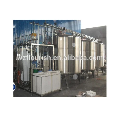1)CIP cleaning system is composed of acid tank, alkali tank, hot-water tank, pure-water tank, back-water tank, thick-acid tank, thick-alkali tank, heat exchanger, pumps peripheral valves and pipes.