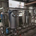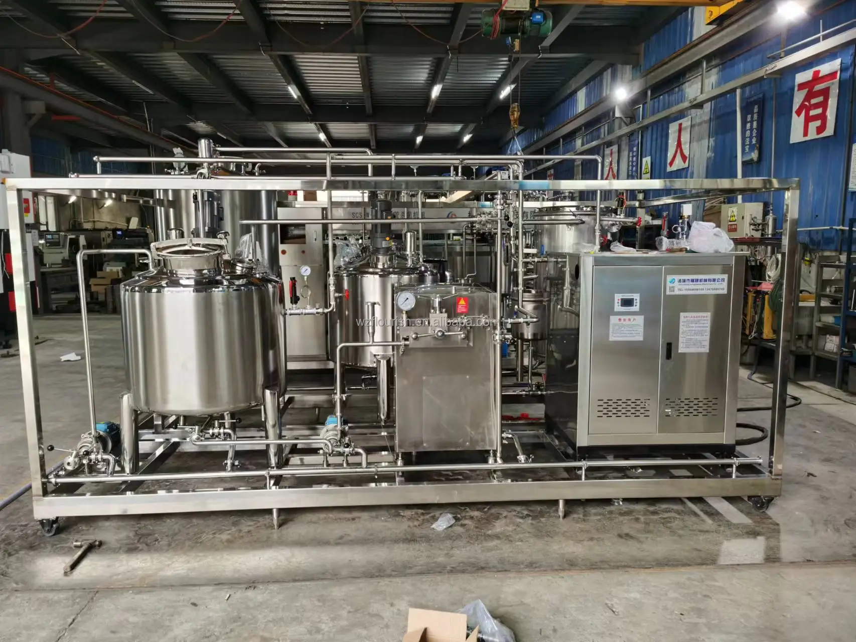 This small UHT processing equipment is customized for small business, it is consisted of mixing heating tanks, buffer tank, sanitary pump, homogenizer, UHT sterilizer and finished goods tank. All these machines will be installed on a machine frame before delivery to save abroad installation cost.