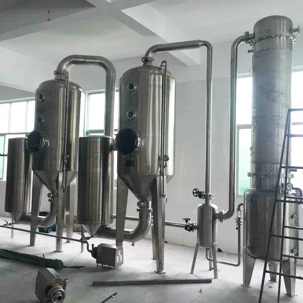 Single effect or multi effect falling film evaporator is widely used in the concentration of food, beverage, chemical, environmental protection and other aqueous solutions. And can be widely used in related industries waste liquid treatment. The equipment is operated continuously under vacuum and low temperature. It has high evaporation capacity, energy saving and low running cost. It can maintain the original color, aroma, taste and composition of the treated material. In food, food processing, beverage, light industry, environmental protection, chemical industry and many other industries have been widely used.