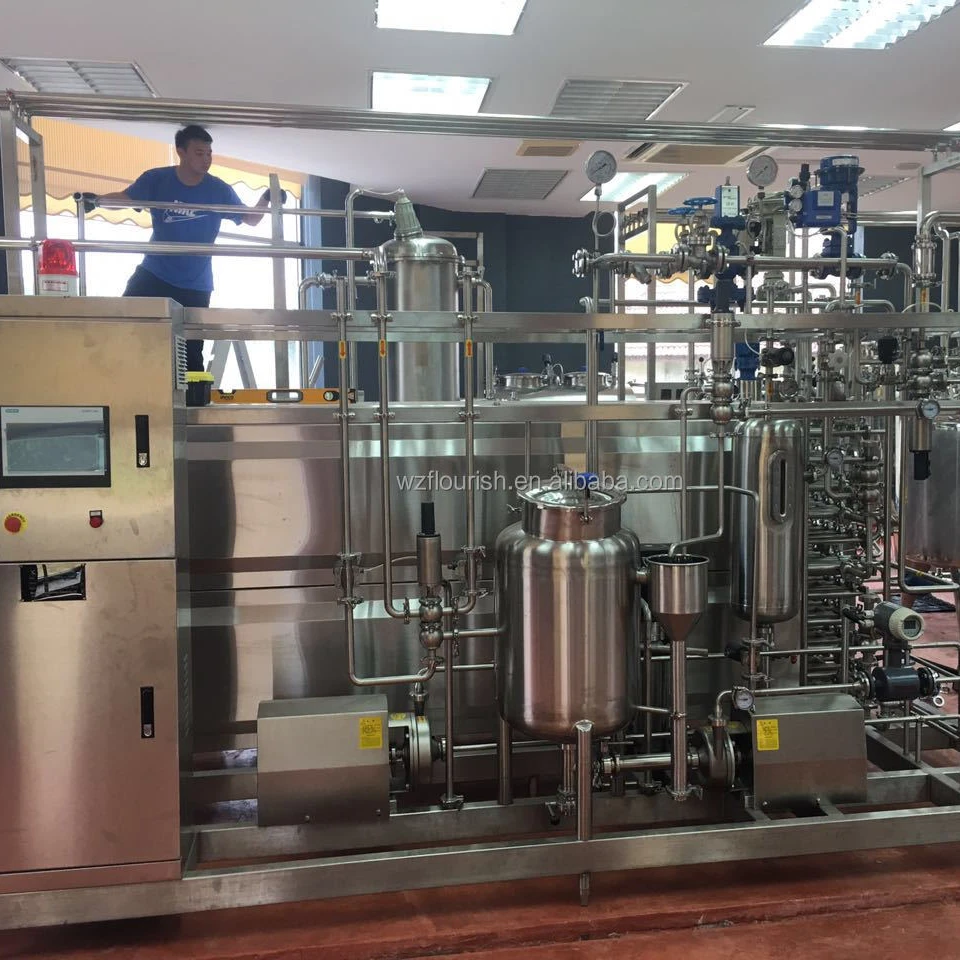 Tubular sterilizer is mainly used for heat treatment of various dairy products, fruit juices, beverages, molasses, soy sauce, wines, vinegar and liquid medicine. The equipment is mainly composed of steam system, material system, hot water system, cooling system, etc. And all parts have been assembled together, making the result compact, small footprint, easy to transport and install. The characteristics of tubular sterilizer are that it can be equipped with human-machine operation interface, which is simple to operate: high degree of automation: semi-automatic or full-automatic PLC and touch screen interface are used for the whole system control. The human-machine interface is simple and easy to understand. Just press the start button, and the whole process from CIP cleaning of equipment, automatic sterilization of equipment to sterilization of materials (milk) realizes full automatic control. No other auxiliary operation is required.