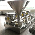 The Liquid Powder Mixer is composed of a casing and a mixing pump which consists of rotor and stator, are mounted vertically. the suction side has a double- wall tube that keeps the inlet of solids separate from the liquids, Thus avoiding the formation of clots before the material enters the casing The liquid enters the mixing chamber at a high velocity, Thereby creating a vacuum in the center of the mixing pump gear, which causes the suction of solids. The fall of the solids could be regulated by means of a valve situated at the bottom of the hopper.